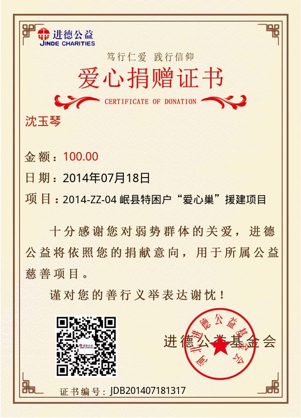 捐款证书 |