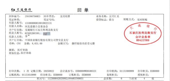 善款支付凭证 支出:8,631.00元 发布时间:2025-09-23