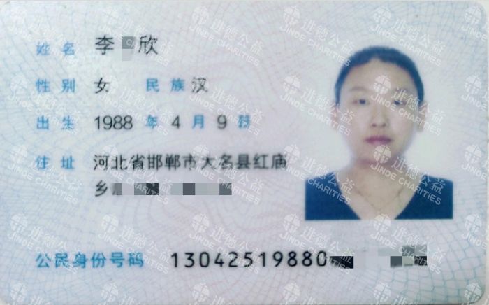 李*欣,女,38岁,河北省邯郸市大名县红庙乡人。