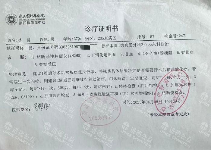 2024年中旬,我因身体不适就医,竟被确诊为结肠癌。这个消息对我们家来说,无疑是晴天霹雳——作为家里的顶梁柱,我上有年事已高、身患重病的父母,下有上六年级的女儿,妻子平时打零工补贴家用,原本就勉强维系的生活,瞬间彻底崩塌,家庭经济也完全中断。