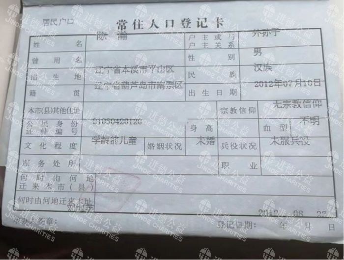 陈*瀚,男,13岁,辽宁省葫芦岛市南票区人。