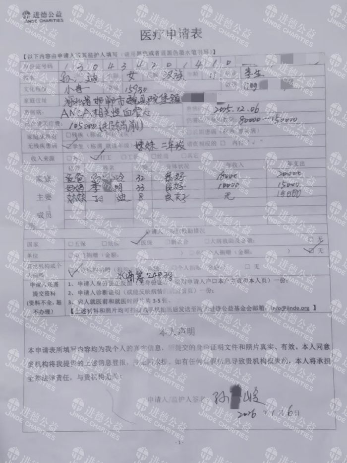 孩子患病后,家庭医疗支出大幅增加。孩子住院期间,孩子奶奶突发不适也需住院治疗,我和孩子母亲只能分头照料,母亲照顾老人,我照顾孩子,无奈关闭了家中此前经营的小店,彻底失去了收入来源。如今奶奶已出院,我和孩子母亲一同在北京照料患病的孩子,全力配合治疗。面对后续高昂的治疗费用和无收入的困境,我们万般无奈下只能向社会各界爱心人士求助,恳请大家能伸出援手,帮孩子渡过这道难关。