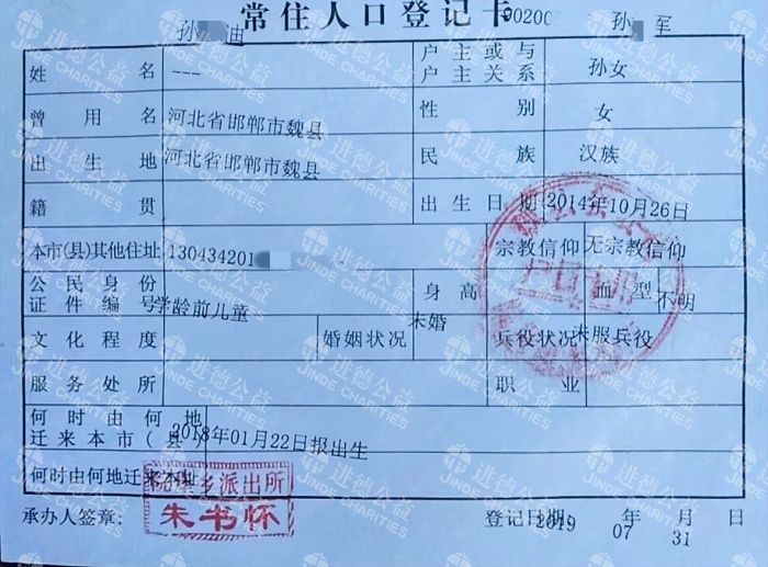 孙*迪,女,11岁,河北省邯郸市魏县院堡镇人。