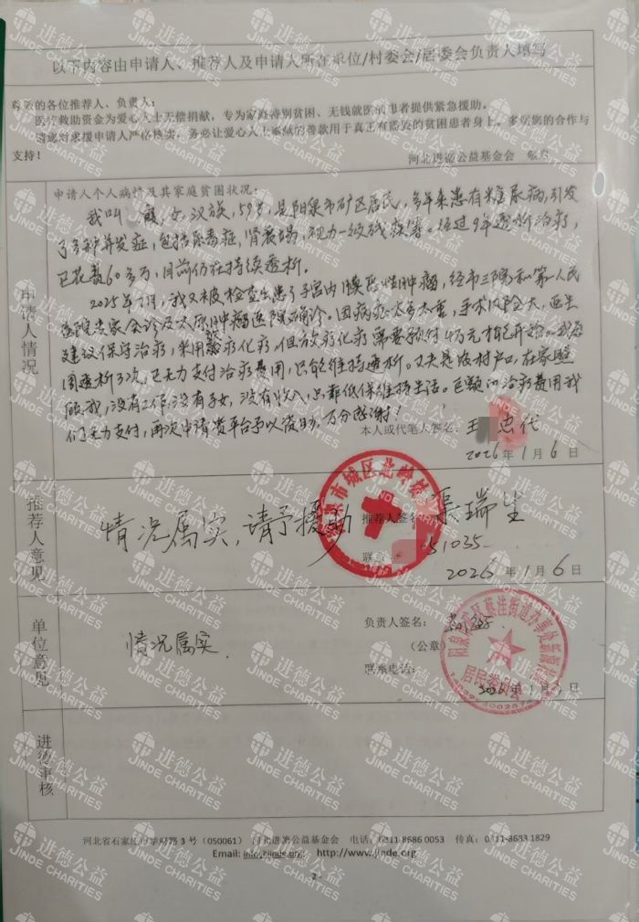 在此,我再次恳请各位爱心人士能体恤我的困境,给予我一定的资助,帮助我筹措放疗化疗的预付费用,让我能顺利启动肿瘤治疗,争取活下去的希望。这份恩情我将永远铭记于心,万分感谢!