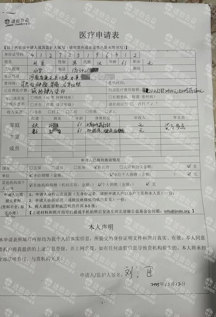 我们老两口每个月固定医药费就要5000多元,家里实在承担不起。儿子一家还要抚养三个孩子,经济压力巨大,实在走投无路。