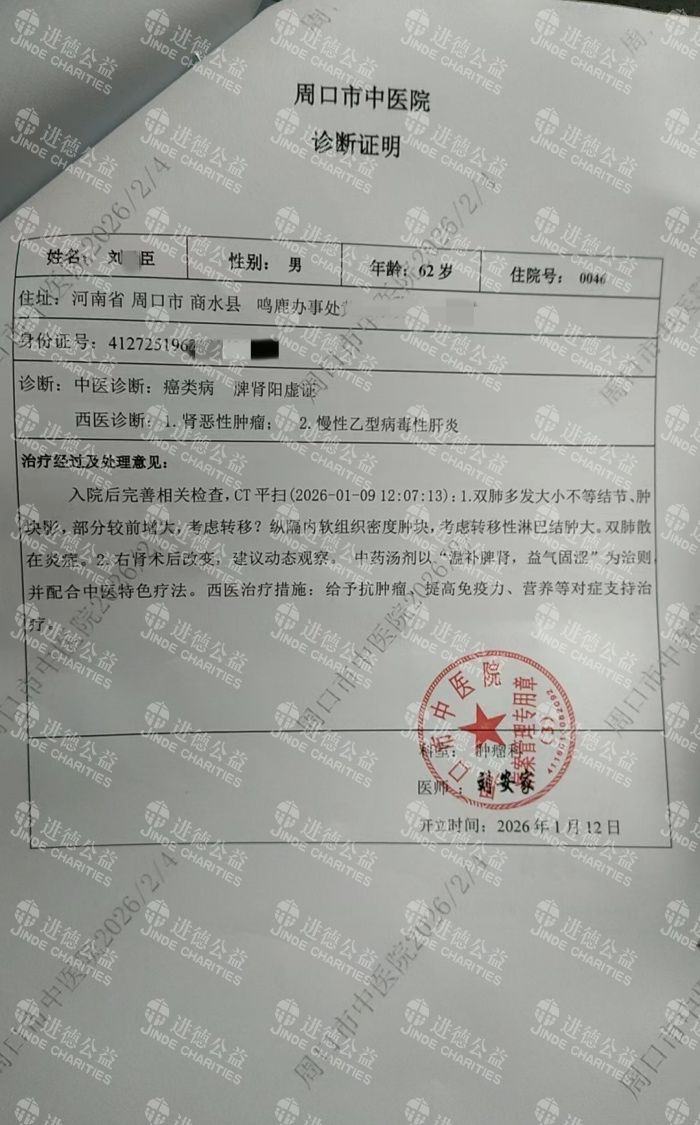 刘*臣,男,61岁,河南省鹿邑县鹿鸣人。