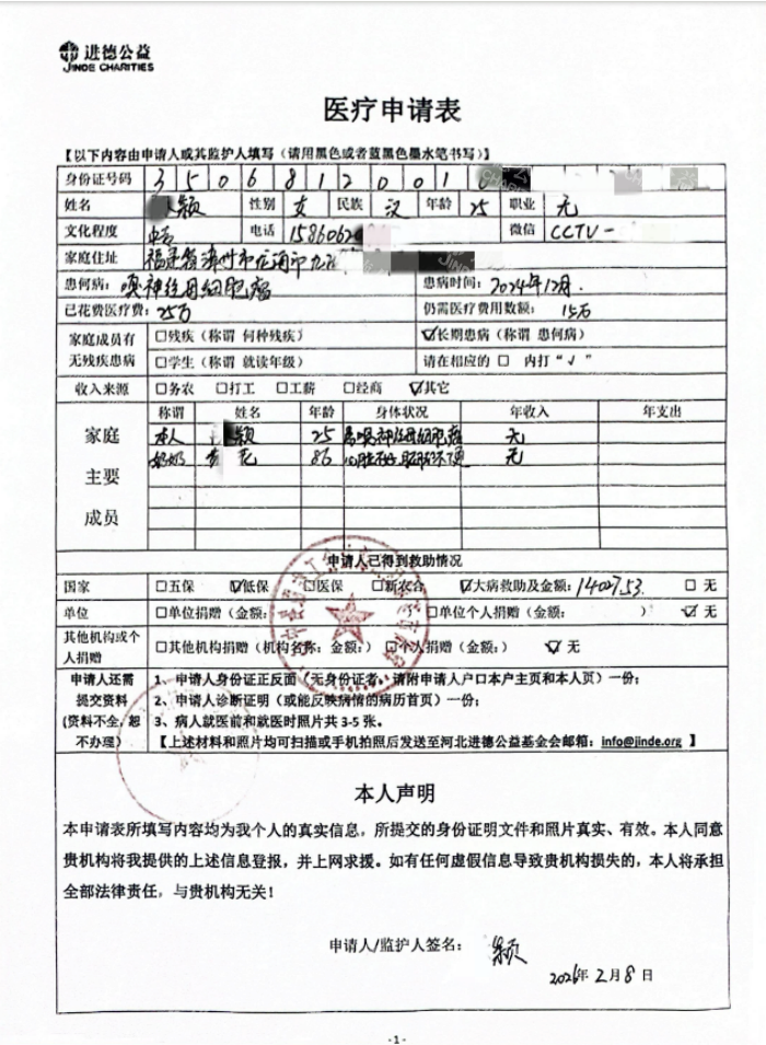 患病后,我彻底失去劳动能力,没有任何经济来源,所有生活与治疗开支全靠亲戚帮衬。平日里我在二伯伯家吃饭,住院期间也全靠二伯伯奔波照顾,其他伯伯和姑姑也时常尽力搭把手。但他们都是普通家庭,各自有家庭和孩子要抚养,长期承担我的治疗费用,早已不堪重负,实在无力继续支撑。