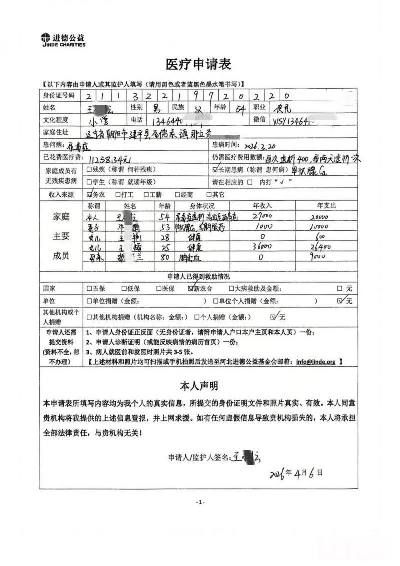 在此,我怀着万分愧疚与恳切之心,向社会各界爱心人士求助。恳请大家能伸出援助之手,帮帮我们这个濒临破碎的家庭,您的每一份善意、每一笔捐助,都是延续我生命、支撑整个家庭活下去的希望,我们全家必将铭记恩情、感激不尽!