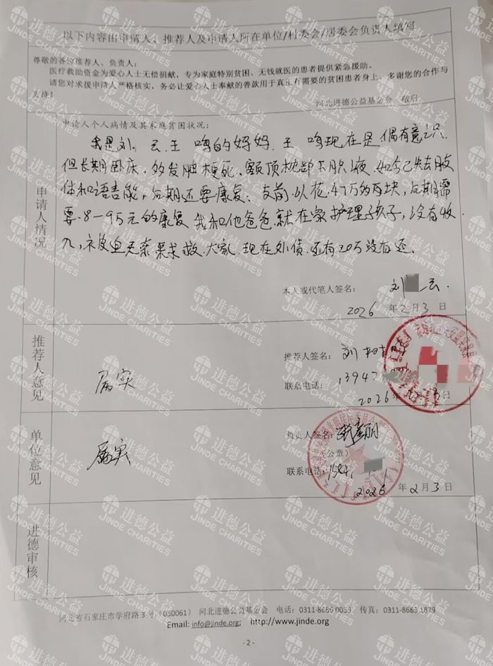 我叫刘*云,是患者王*鸣的母亲。我们本是一个普通平凡的家庭,日子虽不富裕,却也安稳知足。