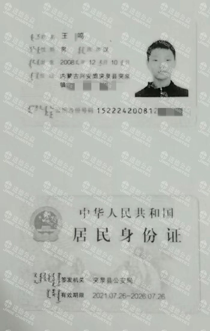 王*鸣,男,17岁,内蒙古兴安蒙突泉县突泉镇人。