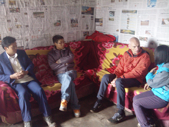 王牧师向Wolfgang介绍了村里现有的天麻种植项目,“进德公益在2012年10月份启动天麻种植项目。开始,条件允许的村里只有五户,经过一年的发展。今年10月份已有50户种植天麻的了”!养殖也是六井村村民很愿意的发展的一个项目,只是因为一头牛需要投入8000-9000元,一只羊需要投入1000-1500元。95%的村民因没有启动资金望而止步,钱几乎用在孩子上学上以及生病看病上。村民的年收入几乎是收支不平衡,村民不敢把积蓄投入。Wolfgang讲到:“他大概了解这些情况,觉得这里很需要帮助,他回到德国总部后,尽量会争取资金,来帮助村民来发展养殖业”