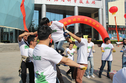 在河北省科技馆张秋立馆长宣布“向灾害SAY NO!——全国减防灾社区系列公益活动”开始后,现场开展了丰富多彩的体验式系列宣教演练活动:防灾减灾专家咨询;灾难逃生,结绳游戏,“空中漫步”激发团队合作意识,“地震松鼠”教大家如何安全逃生,SOS求救信号实施演练等;火灾防护和扑灭知识的普及;地震应急通讯车现场体验;心肺复苏医疗急救等活动。
