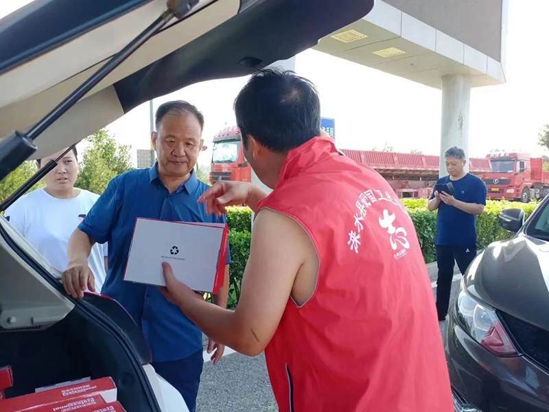 (六)保定高碑店市兰沟洼蓄滞洪区5个镇131个村被洪水围困。8月16日,当地合作伙伴向高碑店市肖官营镇韩村捐献160件水和160箱方便面,高碑店市委统战部,镇党委书记,村委副主任亲自接受物资。受灾老乡按照每户一件水,一箱方面的标准,有序领取了物资。