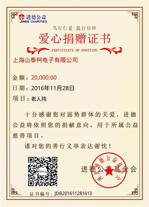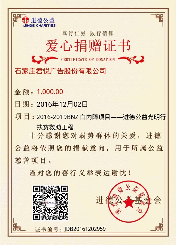 捐款证书 |