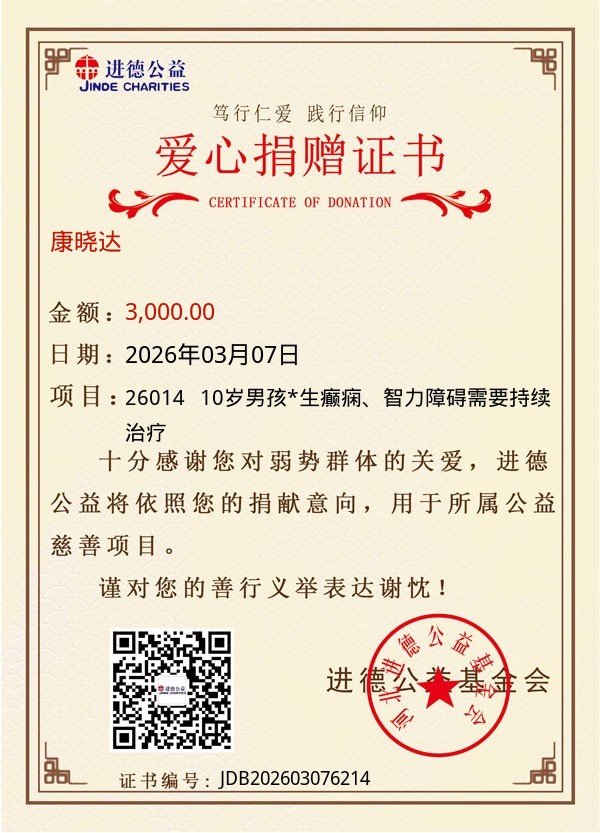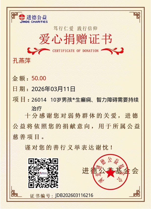 26014 10岁男孩*生癫痫、智力障碍需要持续治疗 |
