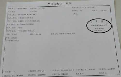 2018年6月11日,支付捐款到梓颖妈妈卜丽超的账户,用于梓颖治疗。