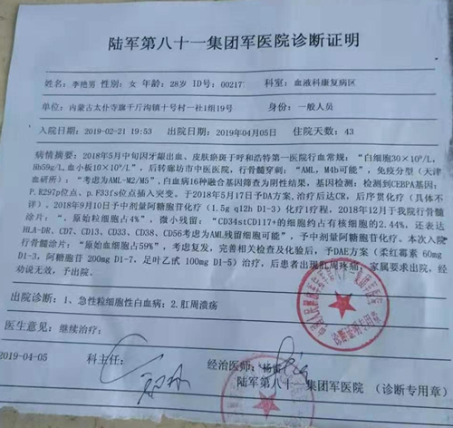 大家好,我叫张海,是患者李艳男的丈夫。2018年的春天,妻子因身体不适去医院体检,却意外被查出患上了白血病,这突如其来的消息使我们这原本幸福的三口之家瞬间陷入绝境。我们的女儿才只有4岁,她怎么能失去母亲?为了生病的妻子和年幼的孩子,我不得不强打起精神来面对,因为我能体会到身患重病的妻子绝望不知所措的心情。