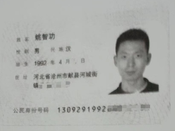 姚智功,男,28岁,河北省沧州市献县河城街镇尹召村人。