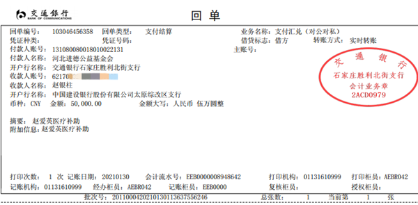 十分感动还有人一直支持我们,再次衷心感谢大家对赵爱英的关心和慷慨解囊!谢谢!