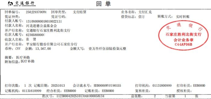 善款支付凭证 支出:13,567.00元 发布时间:2025-10-14