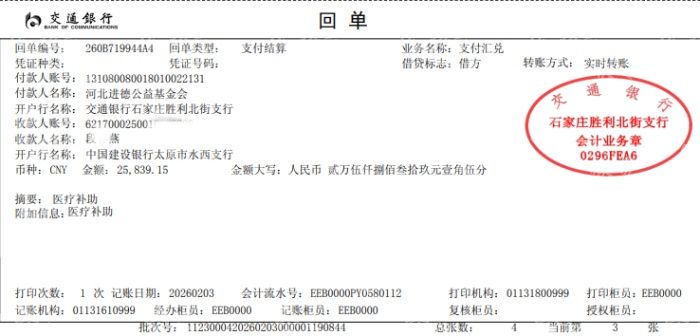 生命可贵,每一个生命都值得被珍视。此刻的王芳还在与死神抗争,她的家人也从未想过放弃。在此,我们恳请各位爱心人士,能伸出您温暖的双手,为这个家庭献出一份爱心,传递一份希望。哪怕是一句鼓励的话语,一笔微薄的捐款,都能给他们带来战胜困难的勇气。