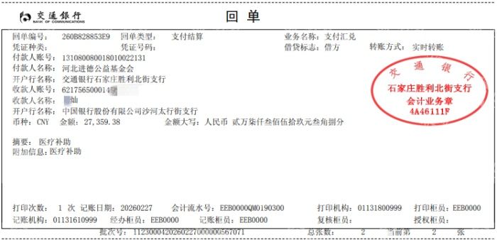 善款支付凭证 支出:27,359.38元 发布时间:2026-03-05