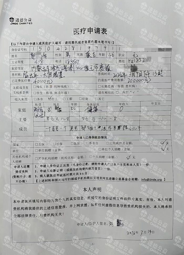 截至目前,丈夫的治疗费用已累计超过4万元,后续还有漫长的康复治疗,费用更是无法预估。由于丈夫没有缴纳合作医疗,所有费用都需要我们自行承担,这对本就拮据的我们来说,无疑是雪上加霜。我每天必须在医院寸步不离地照顾他,无法外出工作,没有任何经济来源,实在无力承担后续的治疗费用。