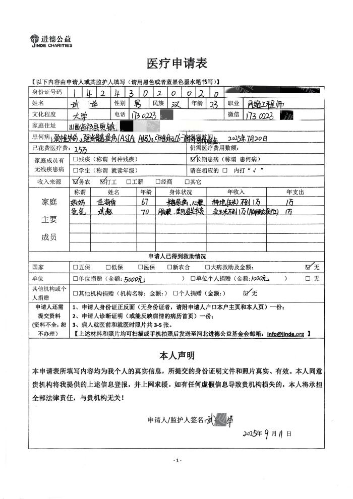 3. 2579 23岁山西汉子武*举突遭横祸,贫困家庭盼生机