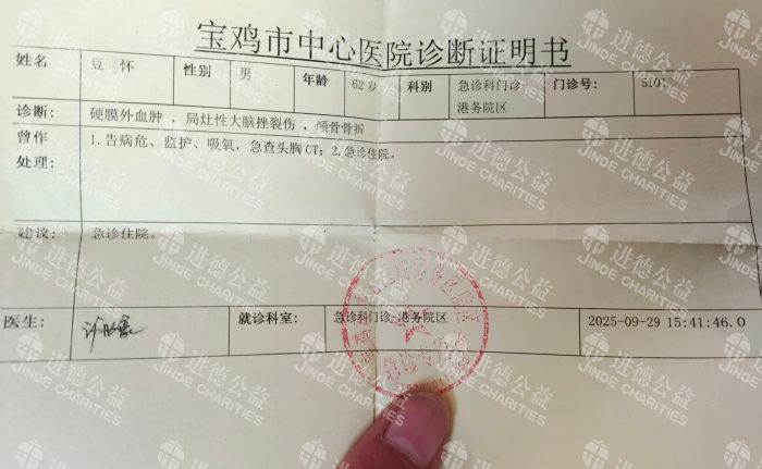 您好!我是陕西省眉县营头镇村民,此刻正含泪写下这封求助信。我的父亲豆*怀突发重病,躺在宝鸡市中心医院的ICU里与死神抗争,而我们这个本就艰难的家,已无力承担后续的治疗费用。